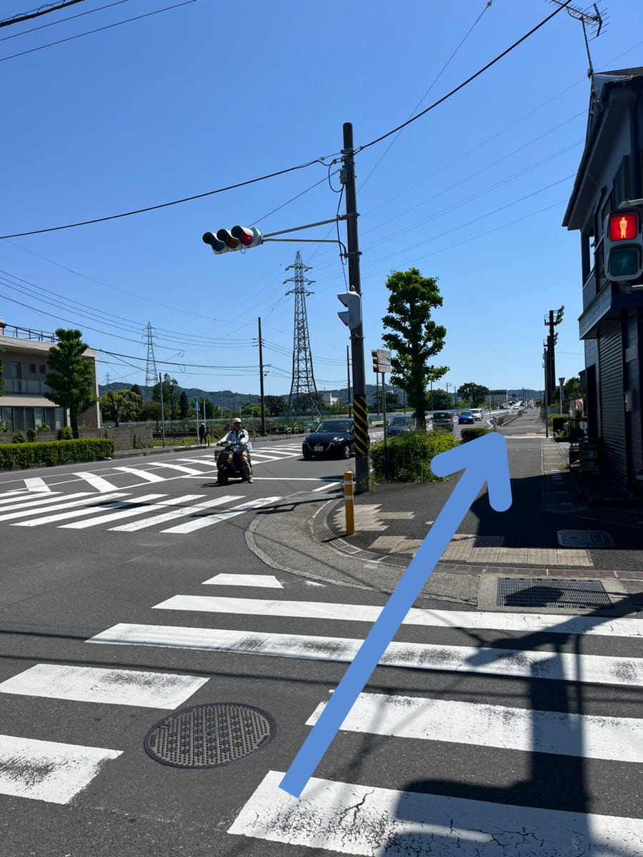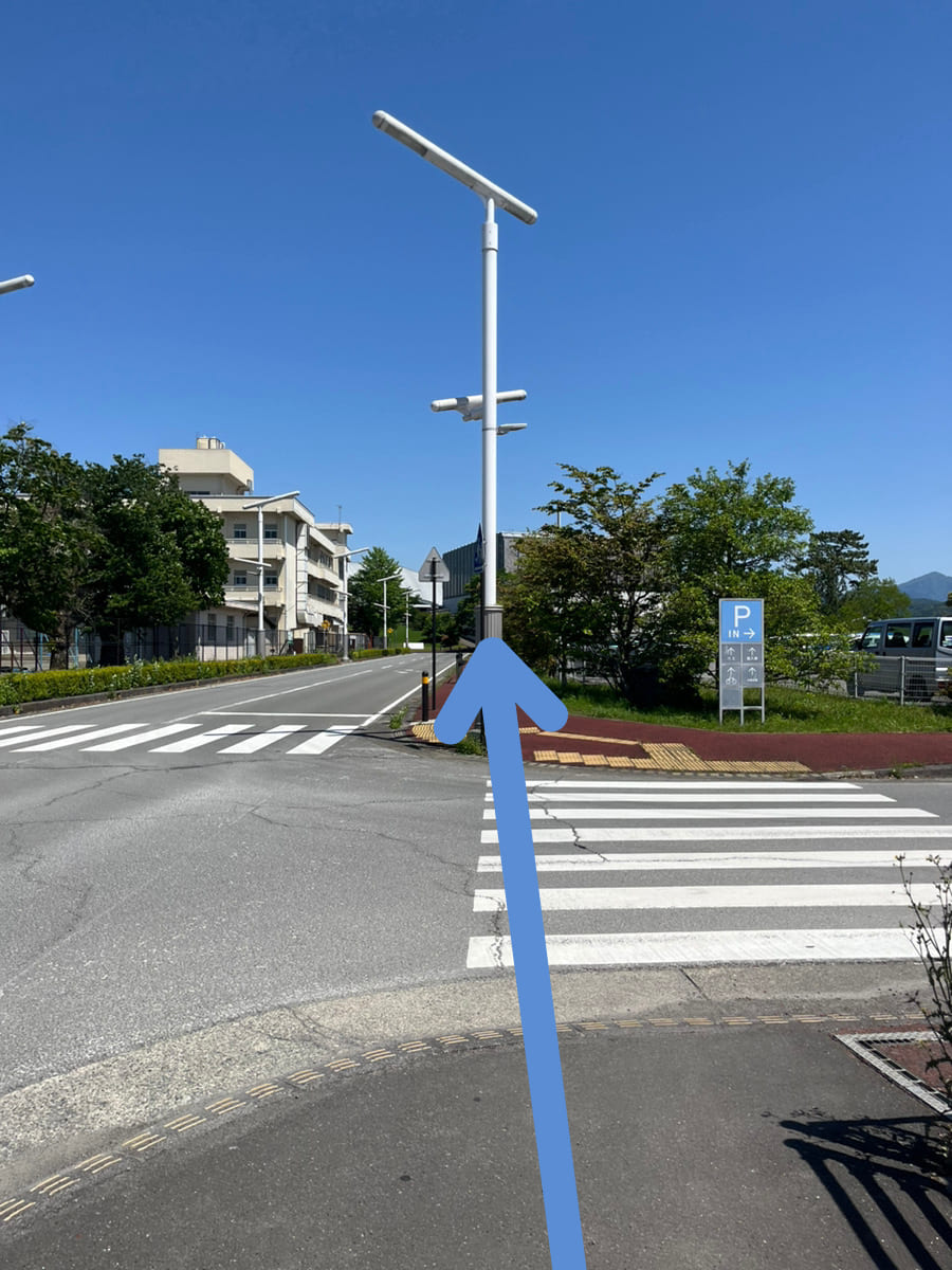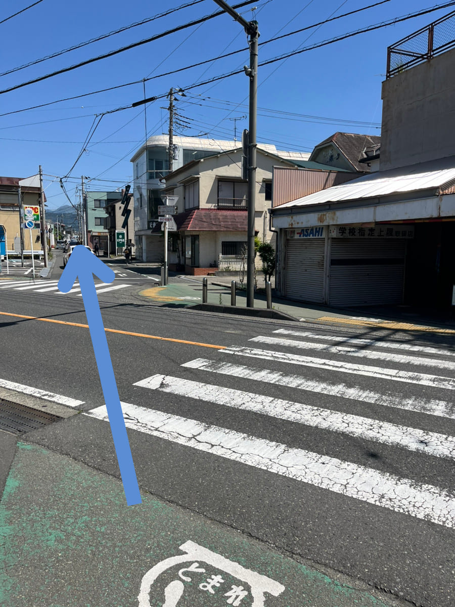 「小田原アリーナ入口」交差点の横断歩道を渡ります。
