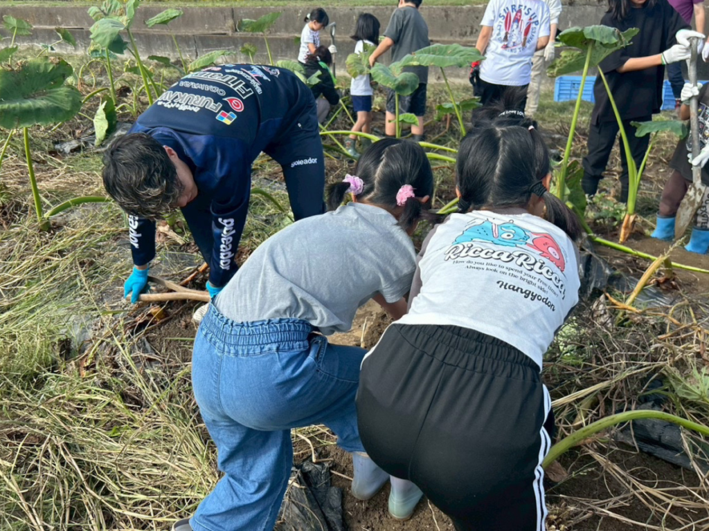 2025年10月18日(土)に行われた弥一芋の収穫では鎌野憲佑選手が参加しました。