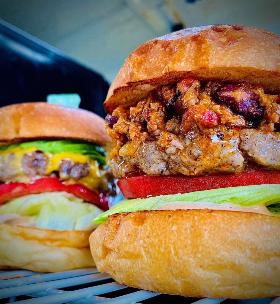 ファストフード的なハンバーガーのイメージを変えたくて、ボリューム・テイスト・ビジュアルに拘った、食事として満足してもらえるハンバーガーを提供しております。