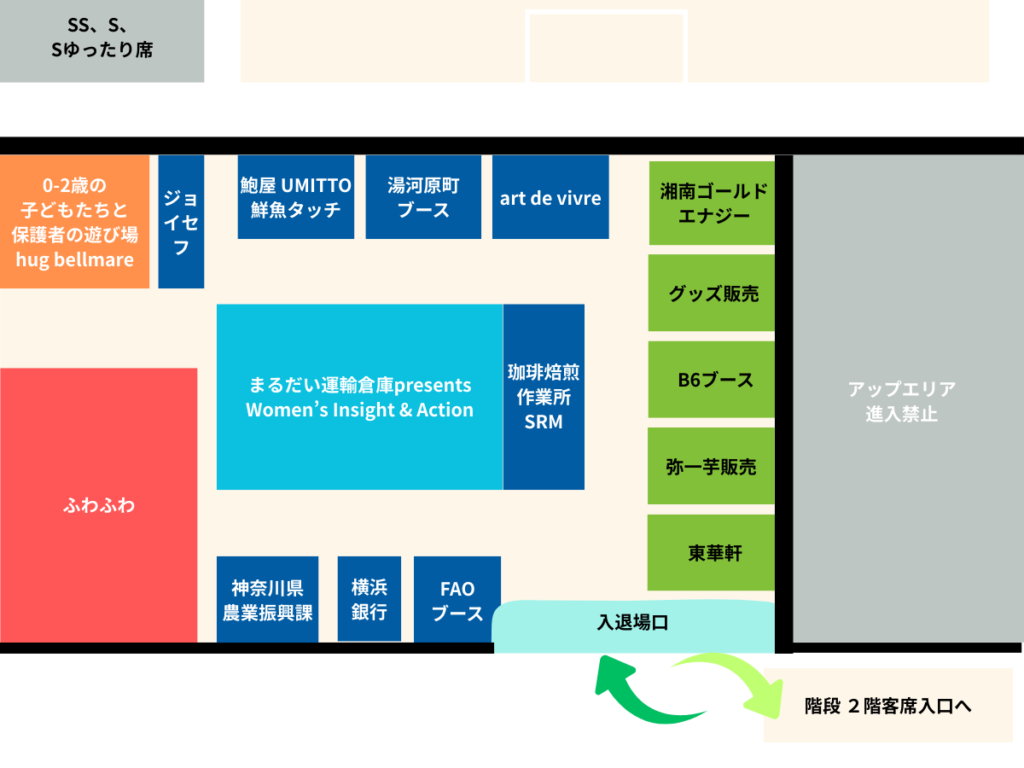 ぜひ階段を降りて1階ブースへ!たくさんのご来場をお待ちしております!