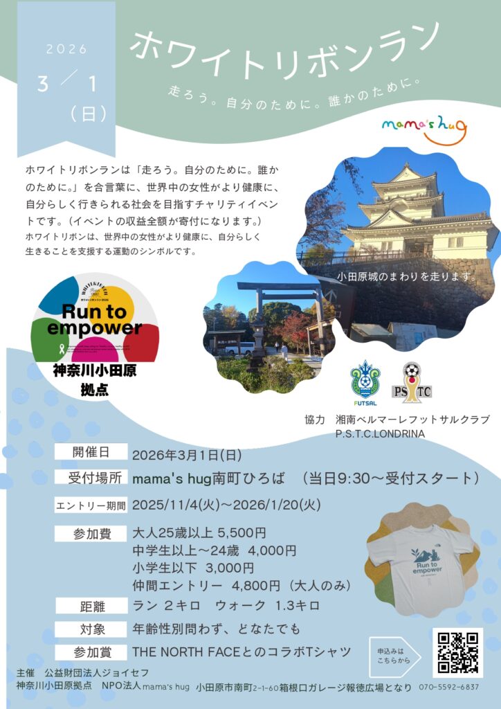 3月8日の国際女性デーにあわせ、世界中の女性が健康で笑顔でいられることを願うチャリティランイベント「ホワイトリボンラン2026」を小田原市で初開催!